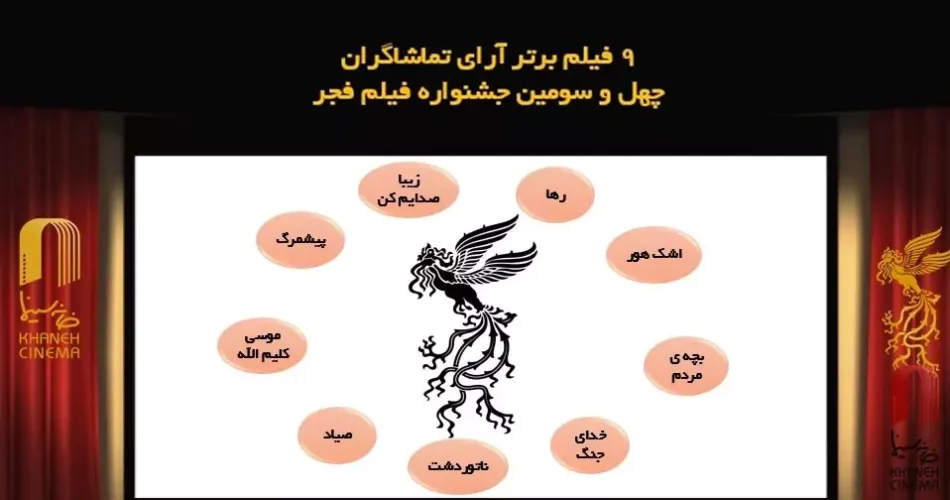 به گزارش سوره سینما و به نقل از روابطعمومی جشنواره، ۹ فیلم برگزیده از نگاه تماشاگران به شرح زیر است: «بچه مردم» (محمود کریمی)، «موسی کلیمالله(ع)» (ابراهیم حاتمیکیا)، «اشک هور» (مهدی جعفری)، «صیاد» (جواد افشار)، «پیشمرگ» (علی غفاری)، «ناتور دشت» (محمدرضا خردمندان)، «رها» (حسام فرهمند)، «زیبا صدایم کن» (رسول صدرعاملی) و «خدای جنگ» (حسین دارابی).